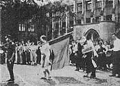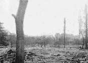 | 大正12年、関東大震災が発生し、目白校舎も大きな被害を受けた。その後復興事業が進められ、昭和2年には理科特別教場、昭和5年には中等科教場が完成した。写真は大正期の目白校地。手前が東。 現在の北グランドに位置に教室があった。 | 昭和20年4月13日夜半から翌未明にかけての空襲により、目白の学習院は正堂・本館など、木造校舎の大部分を焼失した。 | 安倍能成は夏目漱石の弟子としても知られる哲学者で、第一高等学校長・文部大臣などを経て、昭和21年から41年まで第18代学習院長をつとめた。昭和24年には初代大学長にも就任。厳しい財政状況の中、奔走して、その後の発展の礎を築いた。 |
