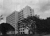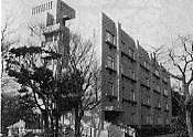 | 昭和24年、新制の大学が設置され、大学開講式が行われた。入学式を兼ねた開講式は本館の前で挙行され、新入生の宣誓などが行われた。壇上は訓辞する安倍院長。 | 昭和27年9月、第1回大学祭が開かれた。 大学単独の文化祭で、講演会、演劇、コーラスなどが催された。輔仁会文化祭とは別に開催され、昭和31年まで続いた。 | 昭和35年に竣工した本部棟と中央教室。 中央教室は高さ25m、1編の長さは30mで、"ピラミッド校舎"と呼ばれた。 その左が本部棟。本部棟は東2号館の建設にともない平成3年に取り壊された。 |