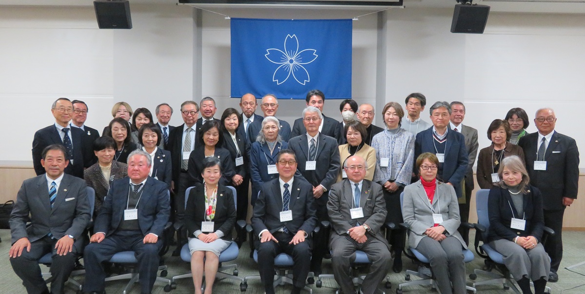南関東ブロックの支部代表者たちが諸戸桜友会長を囲んで記念写真 令和8年2月14日(土)、組織委員会