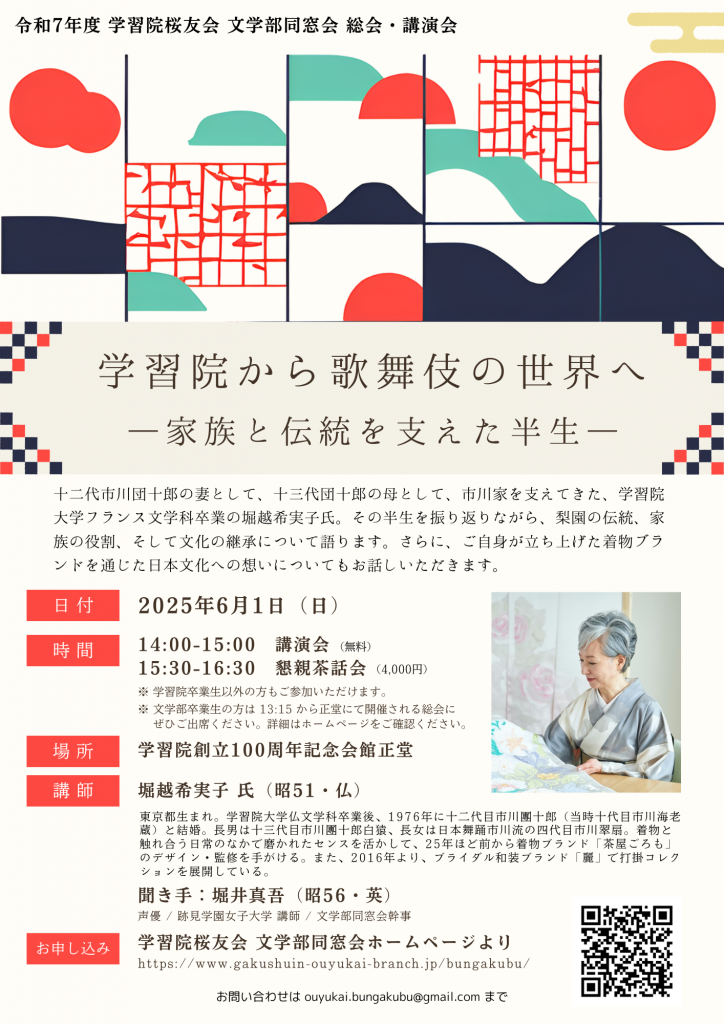 令和7年度 学習院桜友会 文学部同窓会 総会・講演会 を下記の通り開催します。ぜひご参加ください。