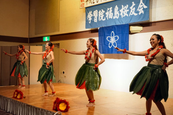 また、東日本大震災後は、福島への風評被害の払拭と福島からの元気発信を図るため、毎年4月に開催される『オール学習院の集い』にアクアマリンふくしまの「移動水族館」の出展やスパリゾートハワイアンズ・ダンシングチームの特別公演なども実施したほか、学習院大学應援團の県内小中学校訪問活動などの支援も行って参りました。