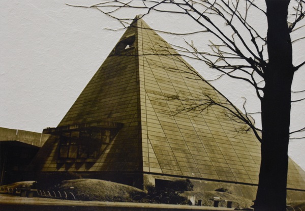 ピラミッド校舎の写真が見つかりました。この校舎は、昭和35年(1960年)に竣工し、平成20年(20