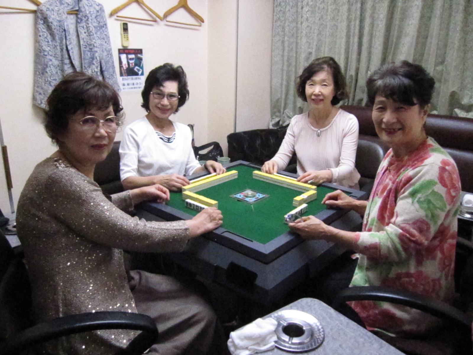 2014.02.18 全国支部:調布・狛江桜友会 平成25年度 麻雀愛好会活動報告 平成25年度 麻雀愛好会の活動報告を致します。平成25年7月20日(土) 麻雀スミダ(国領) 男性1卓、女性1卓。平成25年10月19日(土) 麻雀スミダ(国領) 男性1卓、女性1卓。例会は3カ月ごとの第3土曜日に開催するようにしておりますが、今は月1度のペースで開催日をきめてプレイを楽しんでおります。又、10月は、男女混合のマージャン大会を開催予定です。奮ってご参加ください。お待ちしております。 幹事 渡辺写真の表示は、暫くお待ちください。 麻雀に興じる会員メンバー和気あいあいの麻雀風景