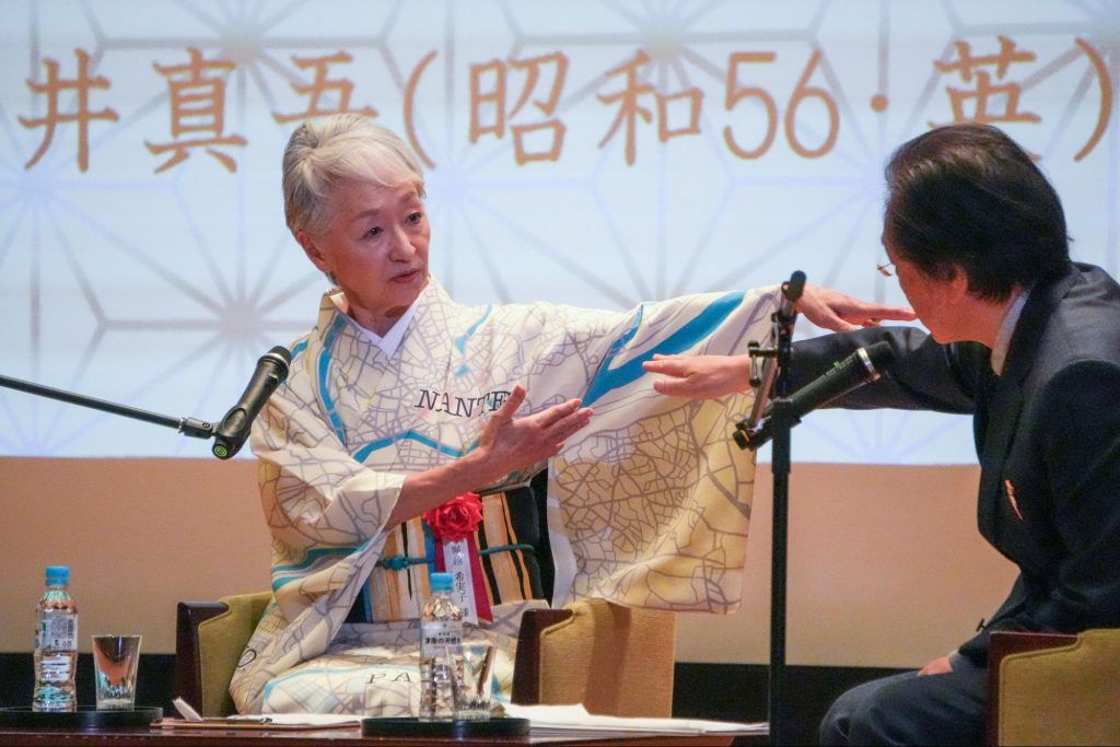 講演では、学習院時代に国劇研究会で舞台を経験されたこと、そして偶然の出会いから市川家に嫁がれ、伝統芸能を家族として支えてきた日々が丁寧に語られました。梨園におけるしきたり、舞台裏での役割、日常生活での気配りなど、普段はなかなか知ることのできない世界の一端が、温かみのある言葉で紹介されました。