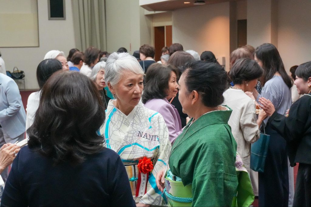 また、講演を終えられたも茶話会にご参加くださり、来場者一人ひとりに丁寧にお声をかけてくださいました。舞台や着物の話題はもちろん、在学中の思い出や現在の活動に至るまで、世代を超えた会話が弾み、会場は笑顔に包まれていました。