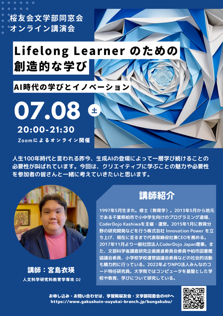 文学部同窓会第三回サロンを下記の通り、オンライン講演会形式で開催いたします