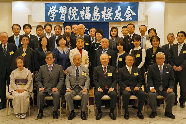 福島桜友会(滝田康雄会長・昭44年法学部卒)では、平成29年10月15日(日)に福島県郡山市の「郡山ビューホテル・アネックス」において、平成29年度総会を開催いたしました。桜友会からは、黒川副会長、学習院からは耀専務理事にご出席を賜り、県内各地から34名が参加して楽しい時間を過ごしました。
