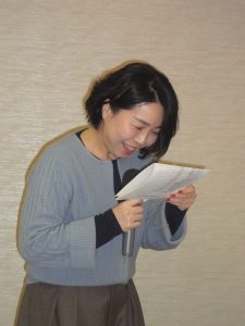しばらく歓談の後、恒例の手作りの作品について制作者から思いを込めた説明があり、「チャリティービンゴゲーム」では、豪華賞品をめぐって緊張したひと時がすぎました。