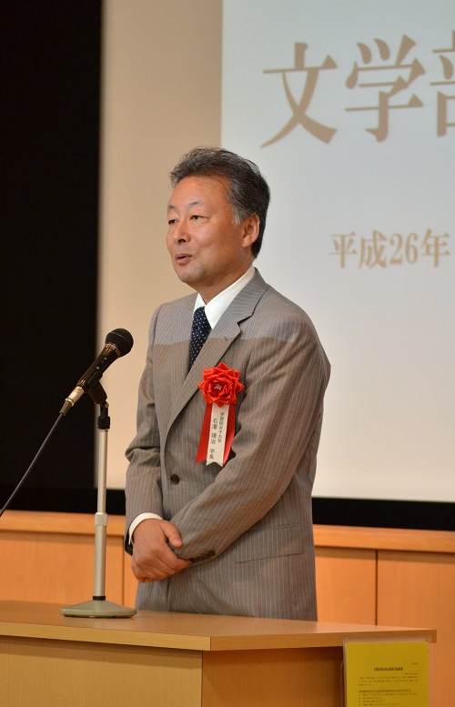 最初に、文学部同窓会会長である学習院女子大学教授の岩崎光洋先生(昭50英)より開会の御挨拶です。