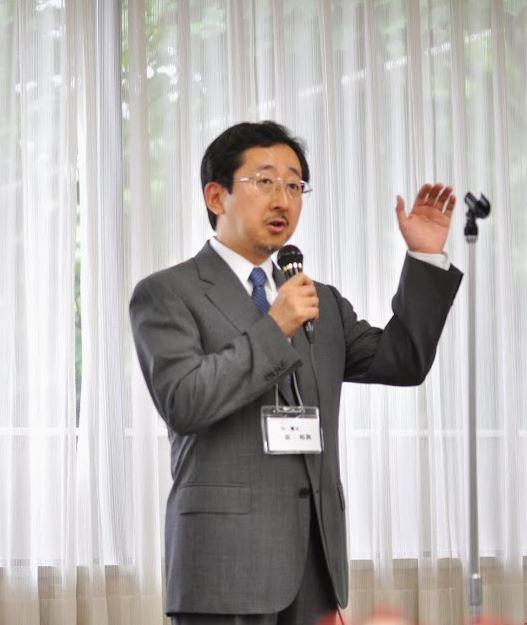 総会および講演会の後は、会場を移して懇親茶話会が開かれました。 最初に、同窓会副会長の大学院アーカイブズ学専攻教授・保坂裕興先生(昭60史)から、開会の御挨拶です。