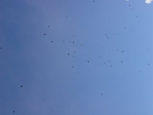 強風を受けた雲の流れの合間から、太陽の陽射しを受けて湖面は光り、