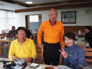 そんな中でも、ひそかにエージシュートを狙っていたという仙石秀彦氏(昭42経済卒)が惜しくも目標には届かなかったものの、見事に優勝されました。空模様とスコアを気にしながらも和気あいあいと楽しい1日となりました(写真は昼食時)