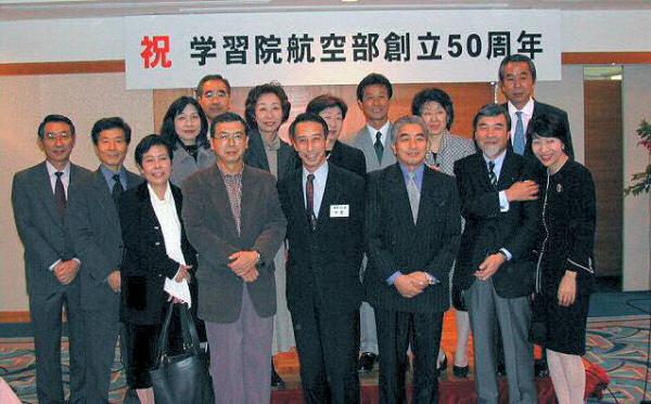平成14年10月26日霞会館に於いて航空部創立50周年記念パーティが開催された。戦後の占領軍により禁止されていた民間航空が昭和27年に再開されると同時に設立された航空研究会はその後同好会を経て部に昇格、昨年めでたくも50周年を迎えることとなった。その間霧が峰、藤沢、妻沼等の滑空場で短大航空部(現在女子大航空部)と共に飛行練習を続けて参りました。当日は溝口部長先生片瀬元部長先生をはじめとし、ご来賓OB・OG現役合わせて95名ものご参加を得て盛大に50周年を祝い、昔なつかしいスライド写真を見ながら楽しいときを過ごした。