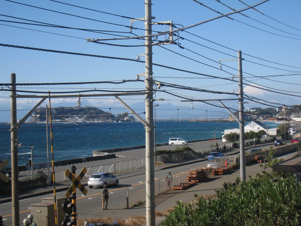 当日は晴天で、江の島の向こうにはっきりと富士山が浮かび、青々とした相模灘の