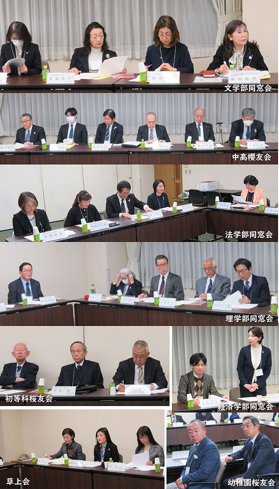 2025.03.18 本部行事:卒業生催事・イベント #組織 令和6年度 学校学部同窓会代表者会 開催のご報告 令和7(2025)年3月12日、百周年記念会館で、学校学部同窓会代表者会が開催された。今回は桜友会会長、副会長を前に、9つの同窓会が、初・中等教育部門(幼稚園、初等科、中・高等科)と、高等教育部門(草上会、大学5学部)に分かれ、それぞれの特色、問題点などについて発表が行われ、活発な質疑応答が繰り広げられた。懇親会では、各同窓会を超えて和やかに意見交換がされた。 組織委員会 学校・学部同窓会支援チーム 画像上でクリックしますと拡大します