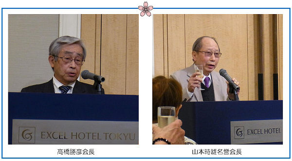総会に続き行われた懇親会では髙橋勝彦会長の挨拶の後、昭和33年卒業の山本時雄名誉会長の乾杯のご発声で宴開始。懇親会はコロナウィルス感染のリスクが考慮され、座席指定の着席で、食事も洋食フルコースだったため会員は安心して食事と懇談を十分に楽しむことができました。