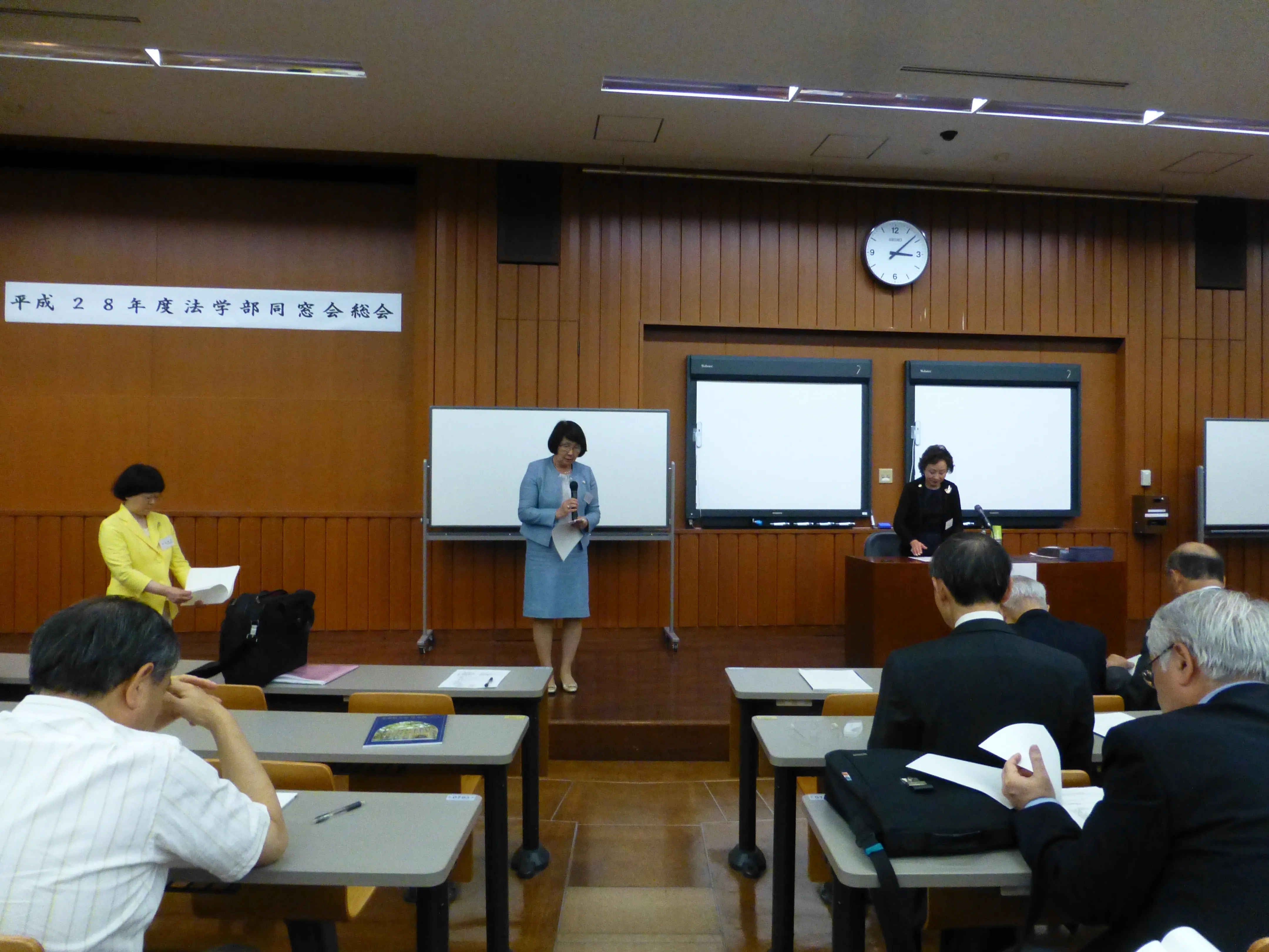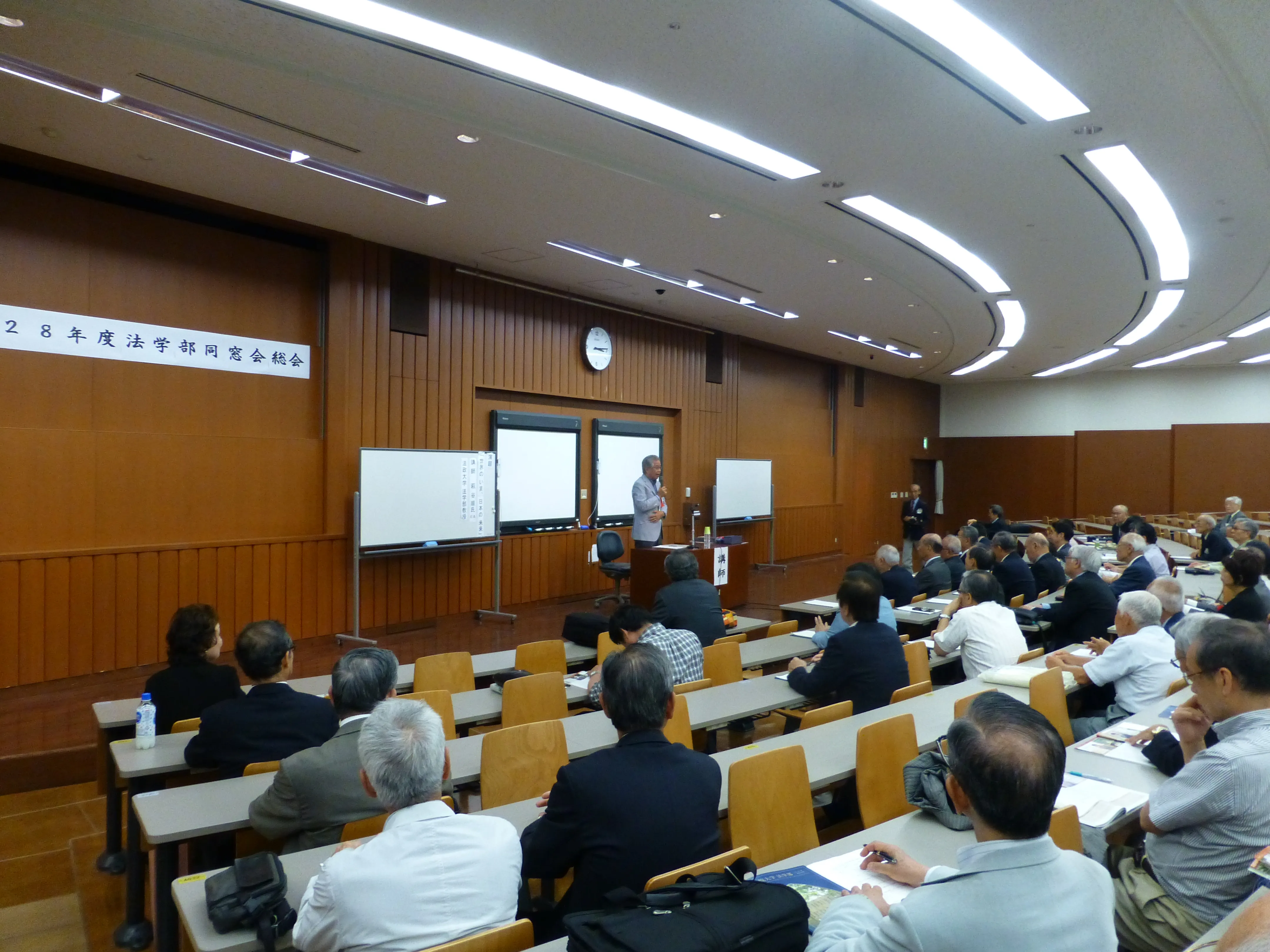2016.06.13 学校学部:法学部同窓会 平成28年・第23回法学部同窓会総会のご報告 去る平成28年6月11日、学習院大学にて、法学部同窓会総会が開かれました。総会後の講演会には講師に萩谷順氏をお迎えし、国内外の政治問題等、大変興味深いお話をお伺いすることができました。引き続き行われた南国酒家での懇親会も、学生を含む多数の参加者のもと盛大にとり行われました。平成28年度法学部同窓会総会・講演会講師 萩谷 順氏 学習院中・高等科出身、法政大学法学部教授 元朝日新聞編集委員、ジャーナリスト、 テレビ朝日スーパーJチャンネル出演中演題「世界のいま、日本の未来」