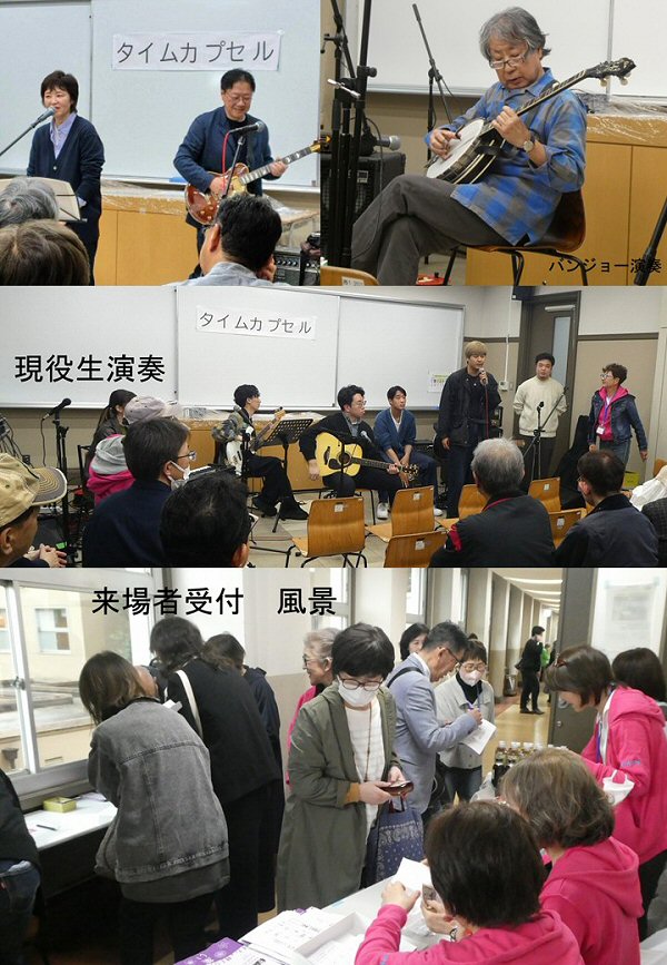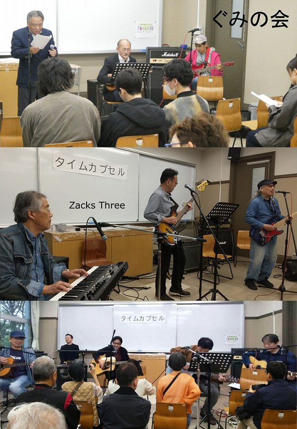 当クラブは“歌は世につれ 世は歌につれ”を基本として、演奏スタイルは様々ですが歌を楽しむをモットーとしています。今回は出演依頼が遅くなり時間が無い中5つのOBOGバンドと現役生に出演いただき、外は雨の中教室は熱気に溢れているという大変楽しい時間を過しました。OBOGと現役生とが歌で繋がる楽しい「集い」を提供いただいた大学・桜友会に改めて感謝申し上げます。 (昭和46卒 楢原猛夫)