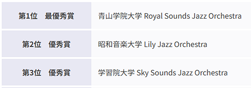 学習院大学スカイサウンズジャズオーケストラ 第3位 優秀賞受賞