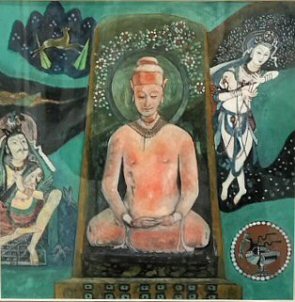 根岸 弘 先生 「絲綢(シルク)之(ロード)路Ⅱ 壁畫(へきが)幻想(げんそう)」(板絵)