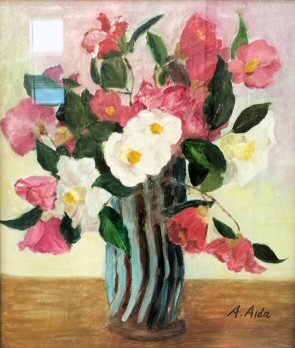 會田 暁美 S33 「椿の花」 油彩