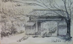 関根 惠子 (佐藤) S51 「手水鉢」 ペン画