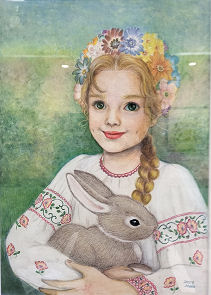 萬里小路 三恵子(徳江)S48「ウクライナの少女とうさぎ」イラスト