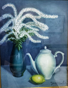 浅川良美(塚田)S50「雪柳のある静物」油彩