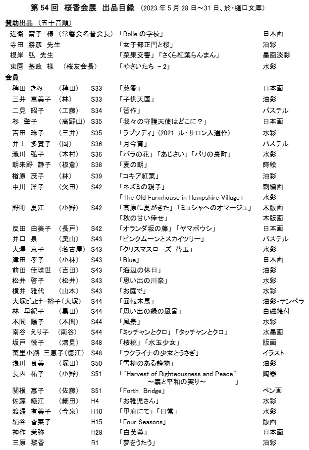 第54回 桜香会展(学習院女子部卒業生の絵の会)