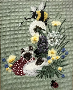 中川洋子(欠田)S42「ネズミの親子」刺繍画