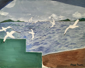 前田佳珠世(吉田)S43「海辺の休日」油彩