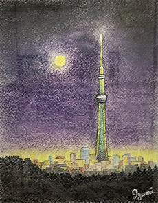 井口 泉(奥山)S43「ピンクムーンとスカイツリー」 パステル