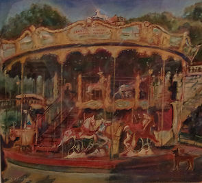 大塚ビュヒナー裕子(大塚)S44「回転木馬」油彩・テンペラ