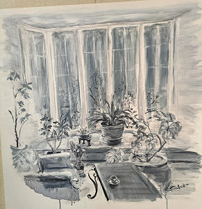 林 早紀子(S44)゜夕暮れ時のコーヒータイム」アクリル