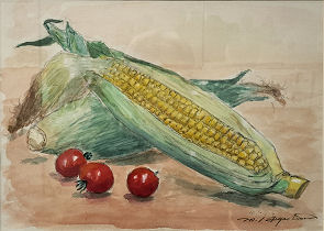 東園基政様(桜友会長)「盛夏のみのり」水彩