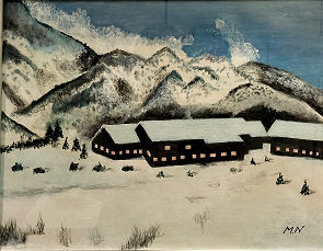 内藤政武様(学習院名誉院長)「トリノ・オリンピック スキー競技選手村」油彩