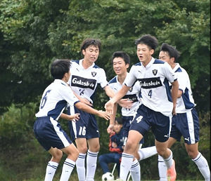 そして迎えた同14分、学習院は3番田村侑大による右サイドからのアーリークロスに4番森知輝がファーサイドでヘディングで押し込み、試合を振り出しに戻す。