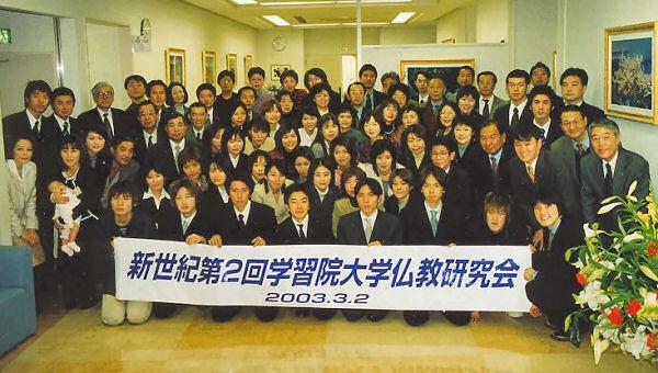 平成15年3月2日(日)、梅の花が満開となり、桜の蕾もほころんできた暖かな一日。久方振りにOB・OG・現役が一堂に会して仏教研究会総会を開催致しました。