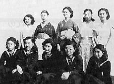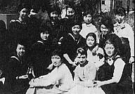 前列中央の小野洋子氏(現ヨーコ・オノ・レノン)は翌年春、男子部卒業生とチェーホフの「熊」を合同公演し主役を演じた