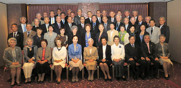 初等科見学後は正門横に待機していた貸切バスに乗り込み初等科時代の遠足を思い出しながら祝宴の行われる霞会館にむかいました。霞会館の宴席は出席者53名にて、「初等科卒業60周年記念誠桜会」を行い、松平忠昌君の司会進行のもと、大迫敏子先生のお祝いのお言葉を頂き、東郷和彦君、尾関和義君、久邇朝宏君の近況報告スピーチ等で祝宴は進み、平山和子(近藤)さんのピアノ伴奏のもと初等科歌の「さくらのきしょう」そして「学習院院歌」を全員で合唱し、次回の再会を約束し宴は名残惜し気に散会いたしました。
