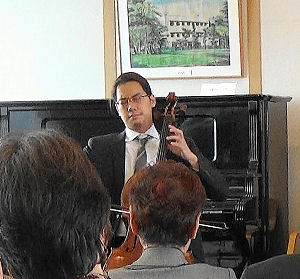 予想より一段と早まった開花で目白キャンパスの桜も満開となりました2018年(平成30年)3月24日(土)、音楽愛好会OB・OG会の第7回の総会・懇親会が目白倶楽部で催されました。会冒頭には昨年学習院大学を卒業されたばかりのチェリスト笹沼樹氏のミニコンサートが行われ、笹沼氏の紡ぎだす力強く、かつ繊細なチェロの音色が目白倶楽部に響き渡りました。続いて行われました総会・懇親会は、学習院から院長の内藤政武様、専務理事の耀英一様、学習院桜友会から会長の東園基政様、音愛OBでもある顧問の秋山豪様、そして参与でいらっしゃる杉肇子様をお招きして行われました。総会では鈴木会長以下役員は全員留任のご承認を頂き、続いて行われた懇親会では笹沼氏にもご参加頂き、昭和28年物理卒の大先輩から1歳半の赤ちゃんまでという幅広い年齢の方々のご参加の中、和気あいあいの暖かい会となりました。【文責:学習院音楽愛好会事務局 菅原(昭和46年卒)】