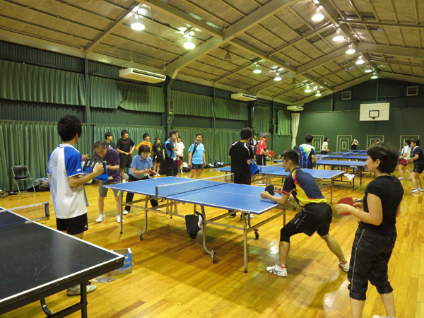 大学卓球場にてOBOGの卓球大会が開催され、ダブルス3組、4チームの総当り戦を行いました。