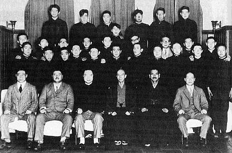 昭和9年頃の学習院中・高等科柔道部。2列目の右から7番目に写っているのは島津久厚院長(当時中等科4年)
