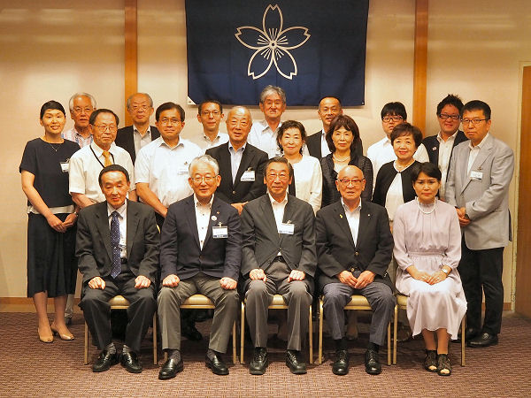 福井桜友会(会長・内藤俊三・昭和46数)では、令和元(2019)年7月20日(土)午前11時30分より、ユアーズホテルフクイにおいて令和元年度(第28回)総会を開催いたしました。会員85名中、昭和40年卒業の大先輩をはじめ平成28年卒業の若者まで18名の参加で、松平顧問、事務局2名の総勢21名の参加をいただき、昨年の「福井しあわせ元気国体」での天皇皇后両陛下のお出迎えの時の画像の披露や秋の行事のご意見等々和気藹々の総会となり帰りには学習院秦々会から取り寄せた「学習院煎餅(松崎煎餅)」と「ちぼりクッキー」を全員に配りお土産としてお持ち帰りいただきました。