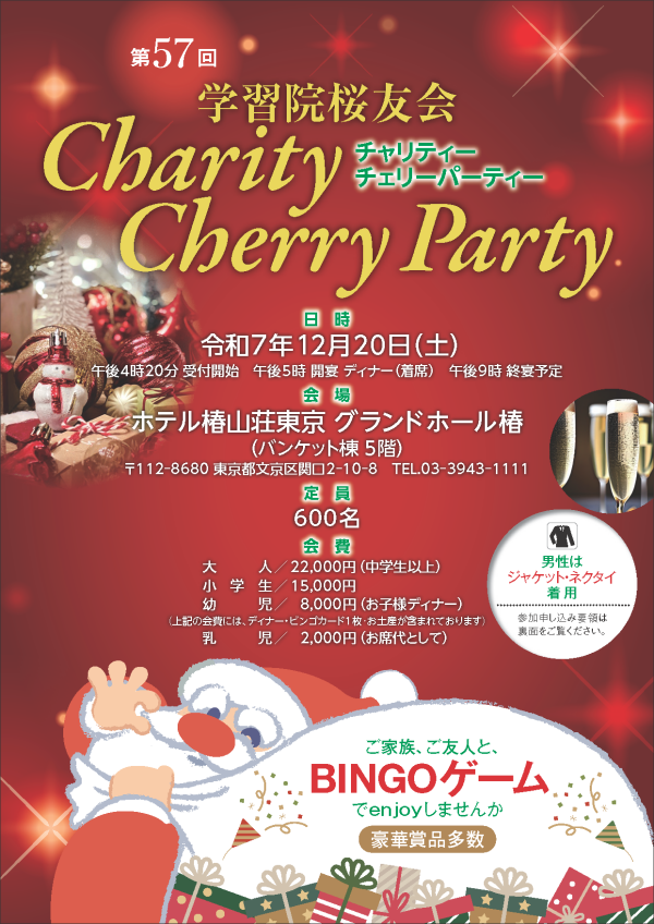 第57回チャリティーチェリーパーティーのご案内・ご協賛のお願い12/20(土)開催