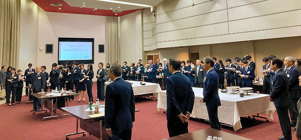 表彰式後は、院長、大学長、女子大学長、桜友会長方と受賞者が直接対話する場として同会館小講堂にて懇親会を開催し、院歌斉唱を行いました。