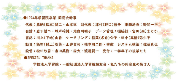 同窓会を実施するにあたり、1年以上前から毎月の定例会議を行い、正副代表3人のリーダーシップと各々の職務を担う幹事会メンバーの絶大な協力と結束がありました。いかにして多くの同窓生に開催の連絡が行き渡り、出席してもらえるか。その克服のため、様々なアイデアと熱意、SNSやQRコードを駆使して、結果的には多くの参加者に繋がったと思います。有難うございました。(文責)野間