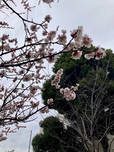 3/11撮影:駐車場脇の杏も開花しました。桜友会事務局:吉田