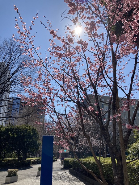 3/10撮影:百周年記念会館前のオカメザクラが咲きました。