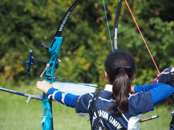 アーチェリーは練習すれば70M離れた場所から的を射抜くこともできます。また、大学から始める人がほとんどなので、努力次第で全国大会にも出場でき、実際に全国大会に出た部員はアーチェリー未経験者、しかも高校の時は運動部ではない人もいます。運動が苦手な人でも問題ありません。